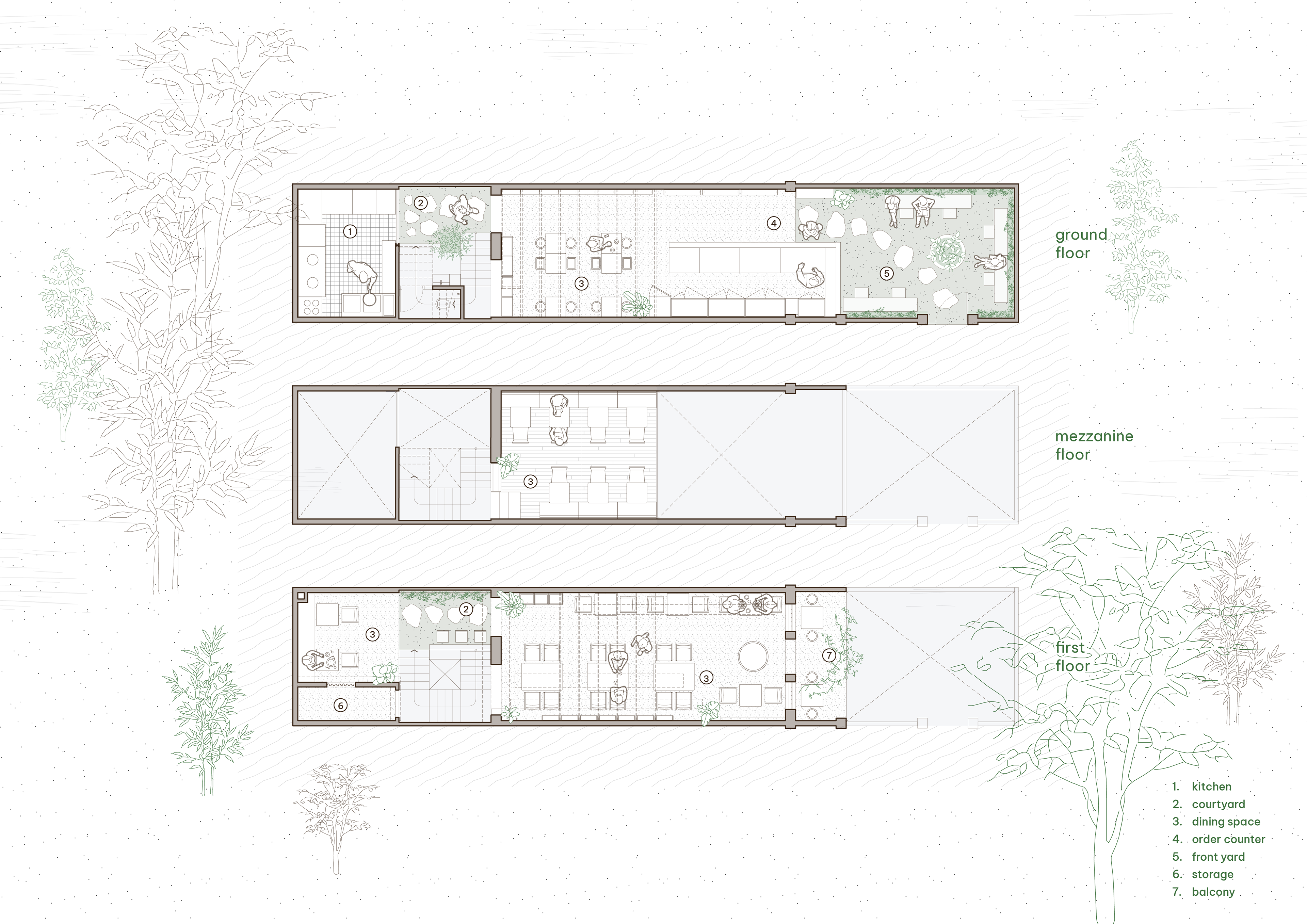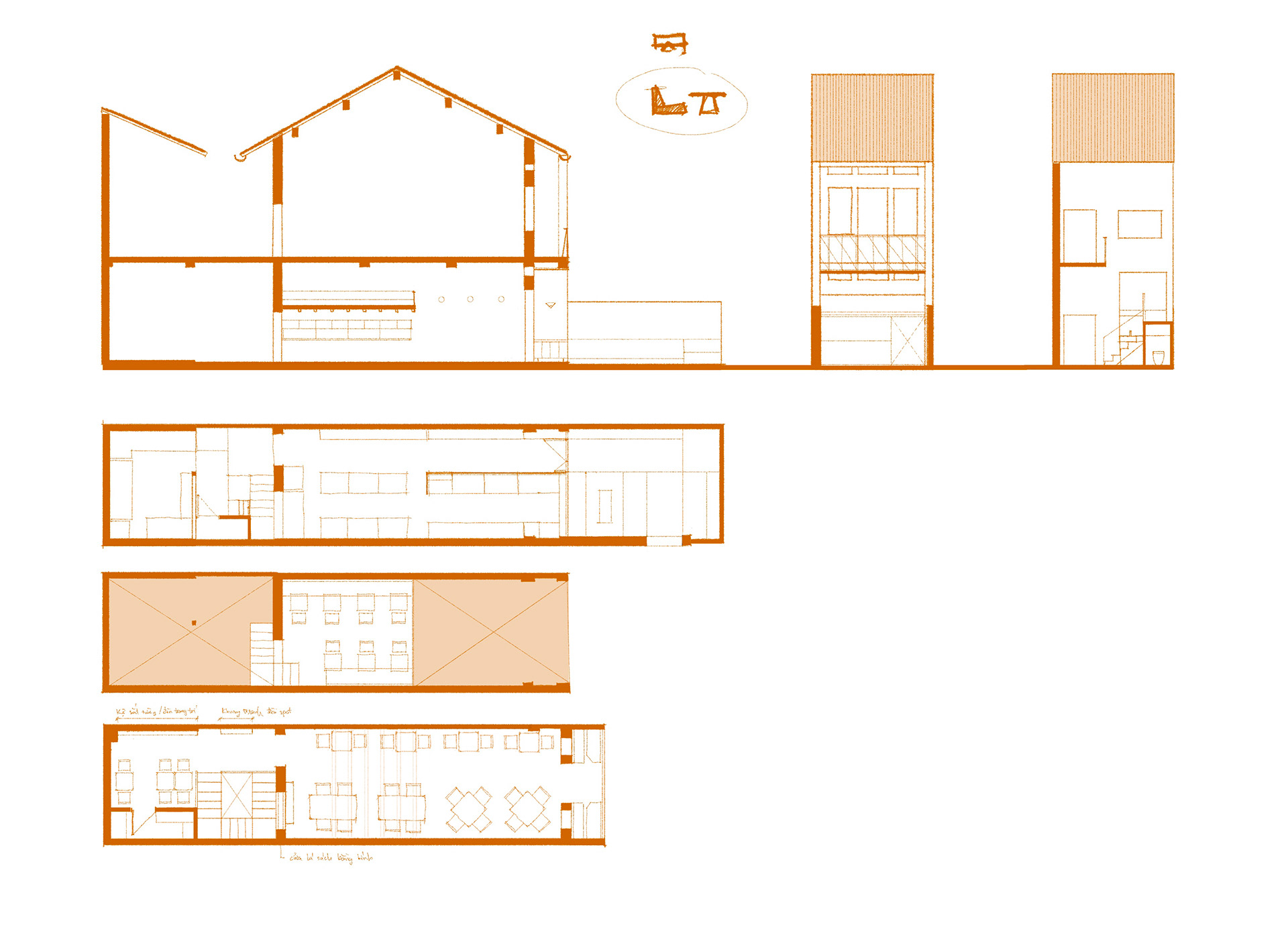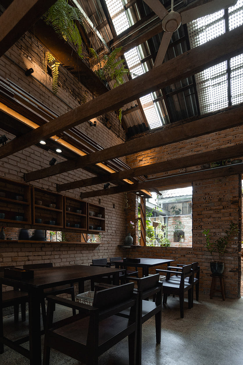 Within this context, the restaurant approaches the site as a cautious addition—not to assert itself, but to introduce a new rhythm into a place already rich in layers of use. The project draws from the inherent values of the existing house, transforming them into a renewed spatial experience aligned with contemporary operational needs.