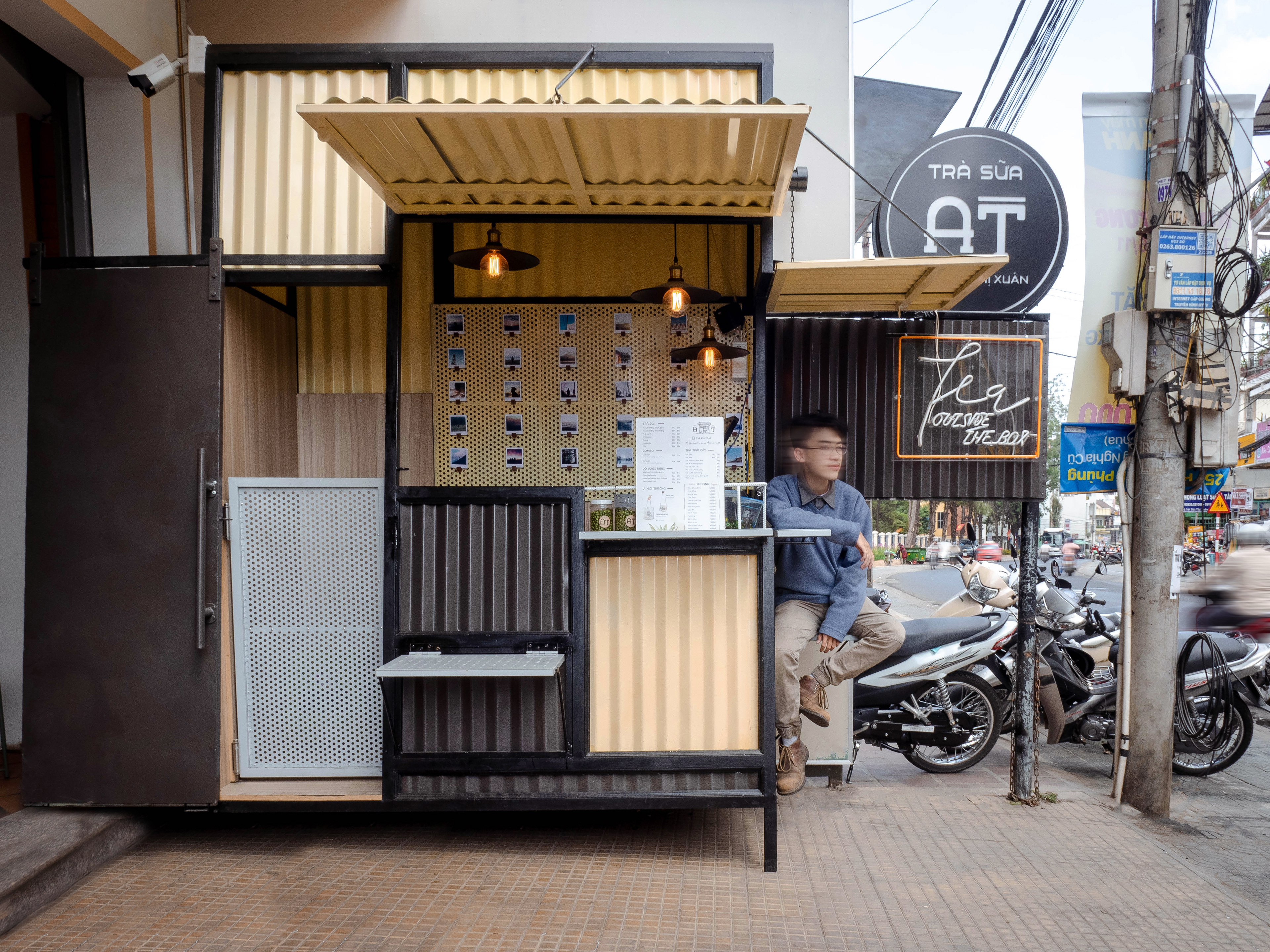 To resolve this problem with a tender approach, Tea-outside-the-box brings to the table a complete opposite style and value of street vendor when compared to others in the field. As a place that customers can drop by to get a drink, while exchanging casual conversation with the provided space - tucked away in the corner of the street, leaving more area for small talks and interactions.