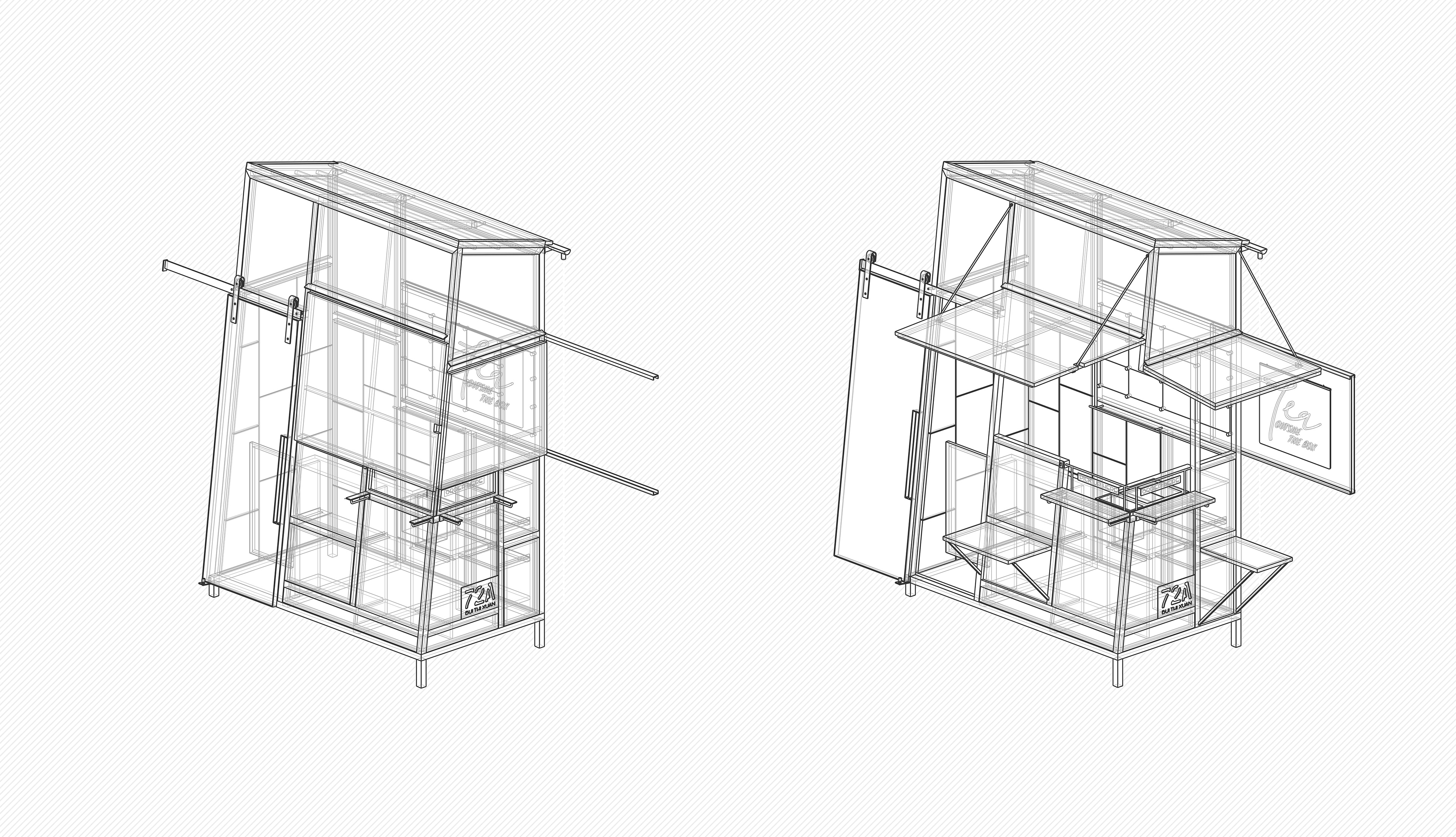 Living in a thriving age of technology and infrastructure, it is not necessary for us to close our doors to ourself, rather, a flexible and generous approach in design can help us erase the invisible barrier between human. With that in mind, we hope that Tea-outside-the-box will become a place which encourage people to escape their own box, to go out and socialize with each other, rekindling our sense of community in this modern world.