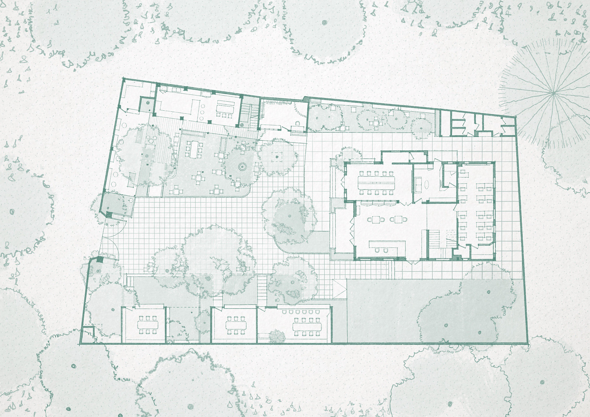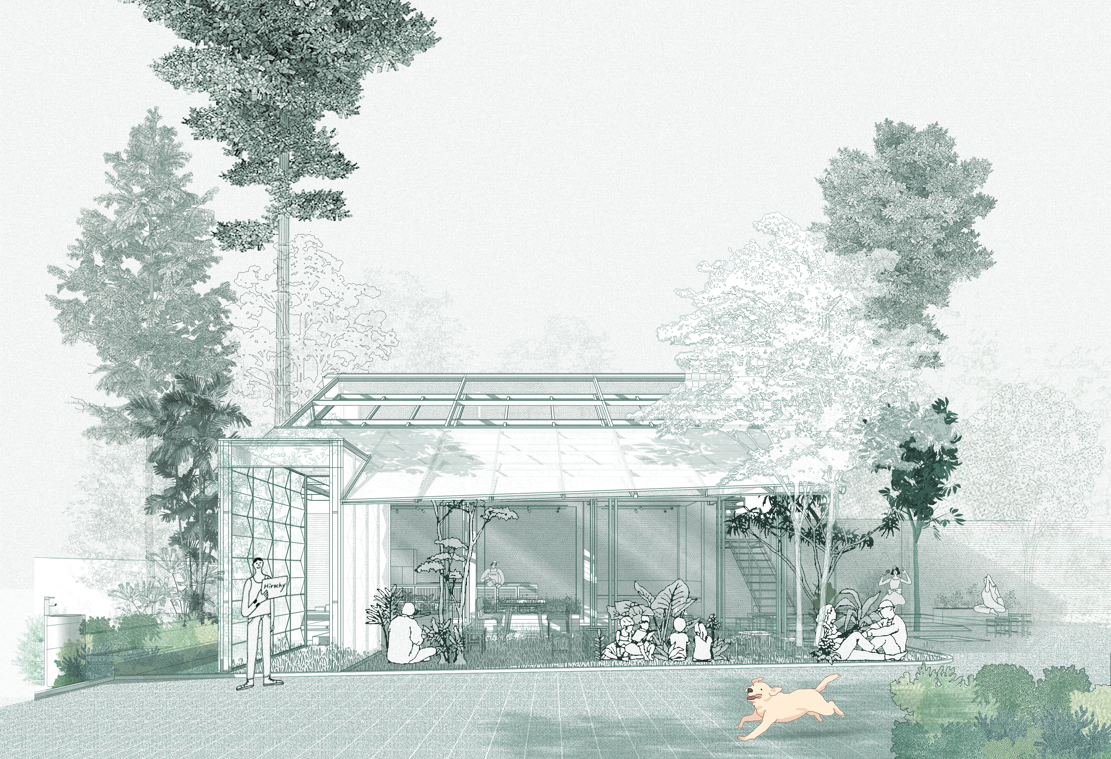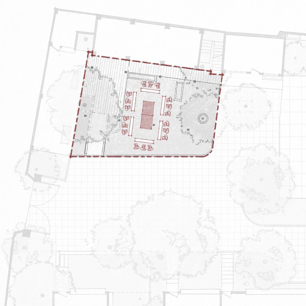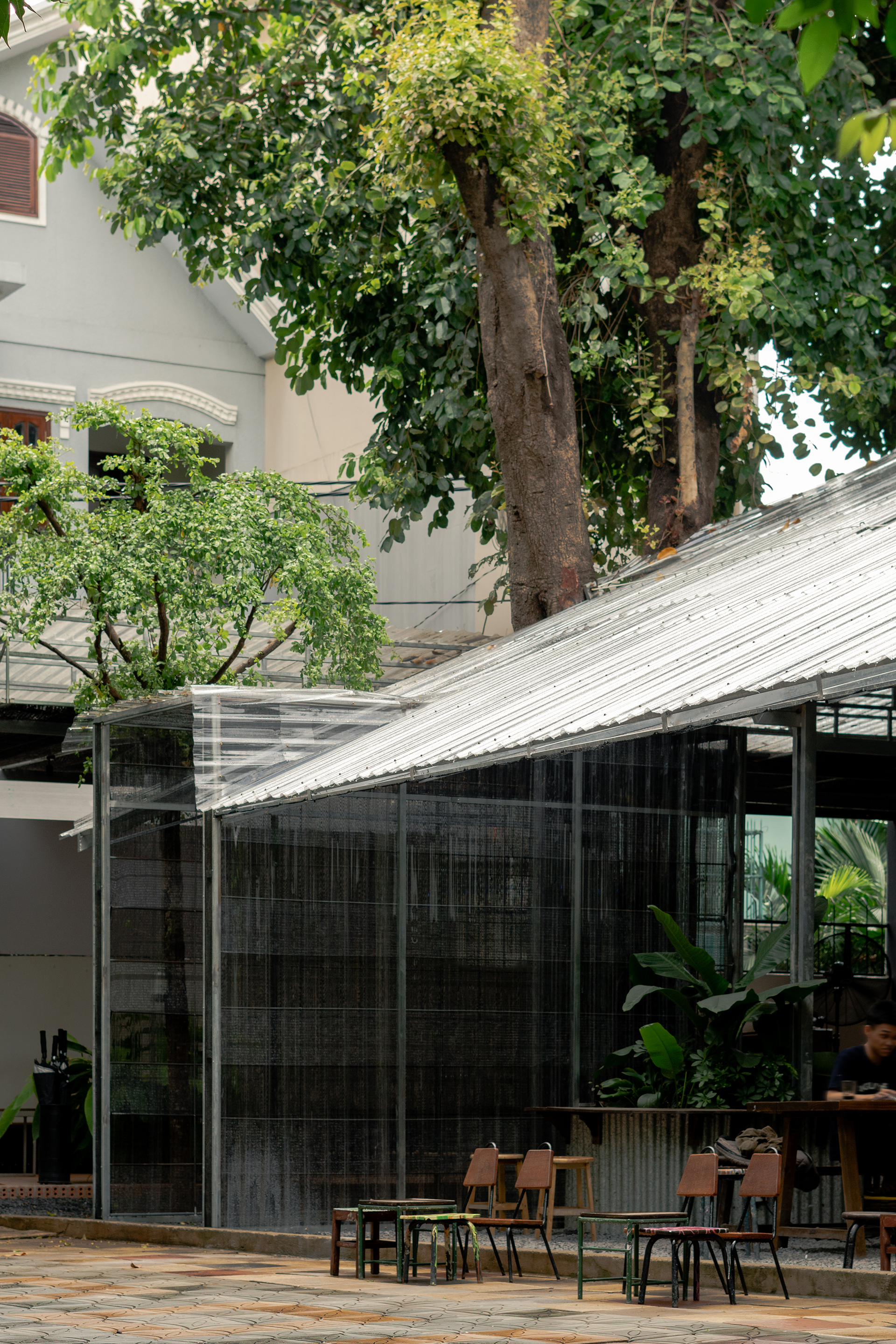 Đó là tầm nhìn mà đội ngũ thiết kế của Xưởng Xép nghĩ đến khi tạo ra không gian, ưu tiên mối quan hệ giữa cảnh quan và công trình nhân tạo. Khung thép mái nhà được Xưởng Xép hạ thấp xuống đến tầm mắt, tạo ra một khu vực bóng mát cũng như một độ sâu cụ thể cho không gian bên dưới. Thêm vào đó, các bức tường chia cắt cũng được hạn chế một cách có chủ ý để tạo sự linh hoạt cho các sự kiện với những mục đích sử dụng khác nhau.
